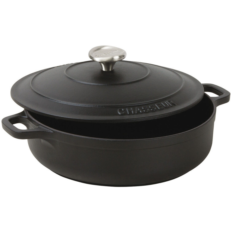 Le Chasseur cocotte basse en fonte avec couvercle noire