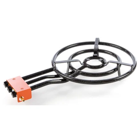 Structure et brûleur en acier émaillé Possède 2 couronnes à robinet et allures séparées Rampes de gaz à utiliser en même temps ou séparément grâce à deux boutons de réglage Le réglage de la flamme se fait très facilement ce qui permet de cuisiner en toute sécurité Très grande robustesse et bonne longévité