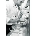 Siphon professionnel pour préparations froides Corps en acier inoxydable brossé, tête en acier inoxydable avec valve fixée Siphon tout inox, sécurité d\'utilisation , conforme à la norme DF21-901:2013 Livré avec 2 douilles (1 tulipe et 1 cannelée) à pas de vis inox, un porte-cartouche et une brosse de nettoyage Soupape et joint à languette amovibles pour un nettoyage rapide et hygiénique