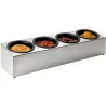En acier inoxydable Couvercle en plexiglass: protection des ingrédients Idéal pour la mise à disposition de toutes vos épices de façon simple et soignée Support incliné pour une plus grande praticité et une meilleure visibilité Très résistant, rigide et possède une excellente longévité Très facile d\'entretien pour une hygiène irréprochable Bols ABS 55cl: diamètre 100mm, H90mm Encombrement réduit