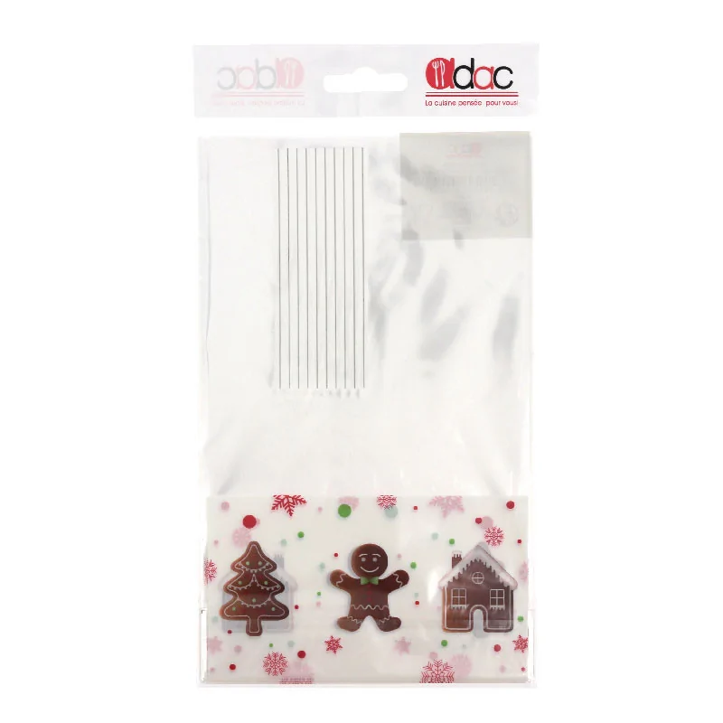 Lot de 10 sachets à bonbons Pains d'épices, 14 x 23 cm, pour présenter et offrir vos chocolats de Noël et autres friandises.