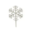 Cristal de neige sur pique en plastique argentés, idéal pour décorer élégamment vos bûches, desserts et cupcakes de Noël.