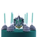 Ce set de 7 bougies d'anniversaire représentant la maison Serpentard d'Harry Potter sera idéal pour célébrer l'anniversaire des petits et grands sorciers. Le set comprend 6 bougies torsadées et 1 grande bougie topper à l'effigie de la Maison Serpentard en vert.