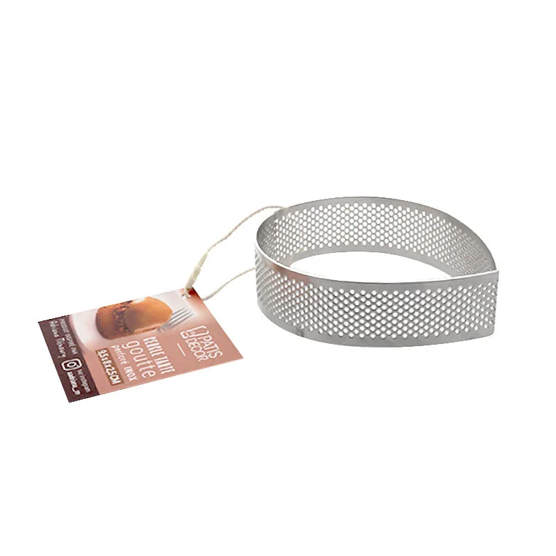 Cercle perforé en forme de "goutte" en acier inoxydable, idéal pour réaliser toutes sortes de desserts très gourmands.