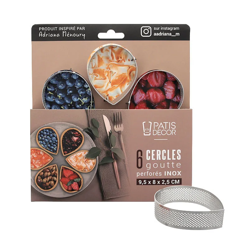 Cercles perforés en forme de "goutte", en acier inoxydable, idéal pour réaliser toutes sortes de tartelettes très gourmandes.