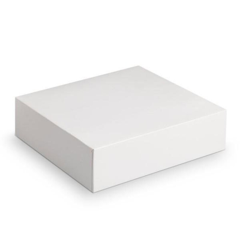 Vos pâtisserie sont prêtes, mais vous ne savez pas comment les emporter ? Cette boîte pâtissière blanche en carton d'une hauteur de 5 cm, est idéale pour emballer et transporter vos gâteaux favoris.