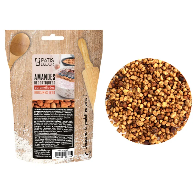 Pour le muesli, les barres de céréales ou encore en topping pour la glace, les brisures d'amandes torréfiées caramélisées apporteront une touche gourmande et croustillante à vos réalisations.