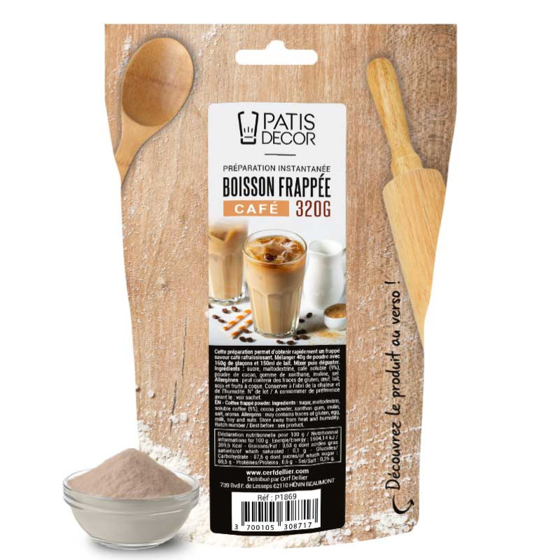 Cette préparation instantanée pour boisson Patisdécor vous permet de concocter une multitude de café frappés. Le terme "frappé", d'origine française, décrit le processus de préparation de cette boisson : pour obtenir sa texture glacée et onctueuse, il suffit de mixer les ingrédients avec des glaçons, les refroidissant ainsi et harmonisant le mélange.