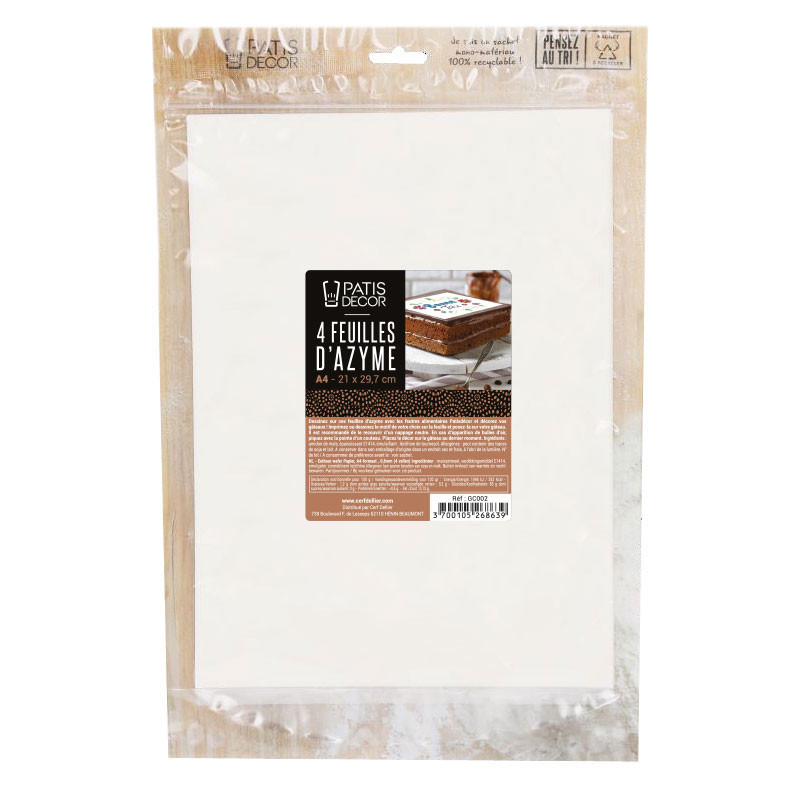 Avec le kit d'impression alimentaire, vous pourrez imprimer non seulement sur des feuilles de sucre, sur des feuilles azyme et sur le chocolat (grâce à l'utilisation de feuilles transfert).