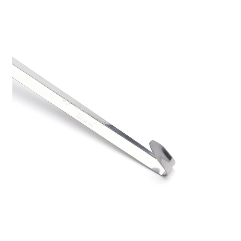 Ustensile professionnel en acier inoxydable robuste et de forme ergonomique du manche pour insérer le pouce. Empêche l’ustensile de pivoter, même avec les mains grasses ou humides. Bonne prise en main sans fatigue.