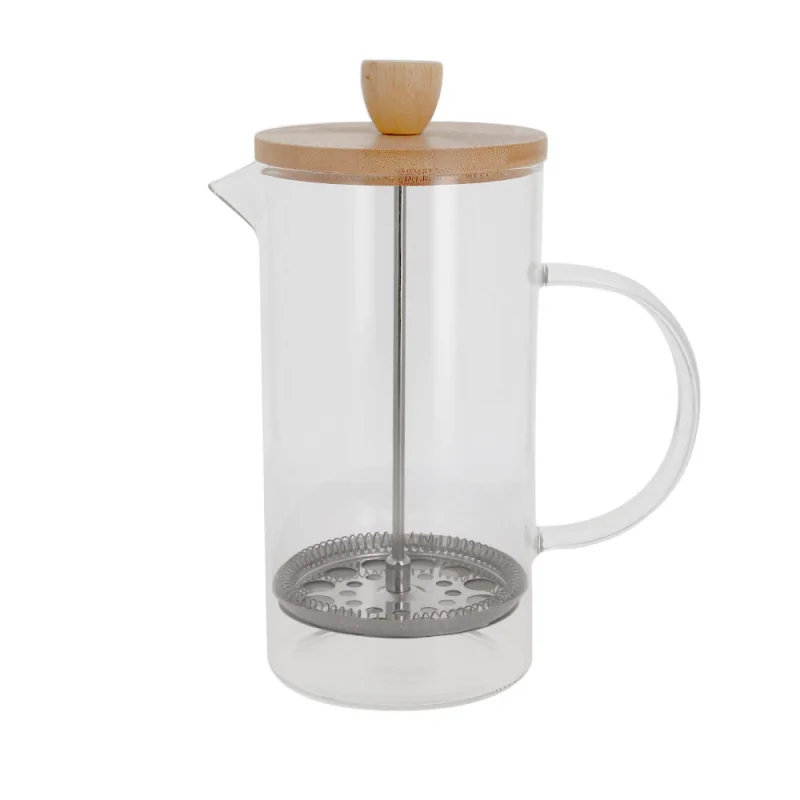 Cafetière à piston en verre de 1000 ml de contenance. Pressoir en bambou.