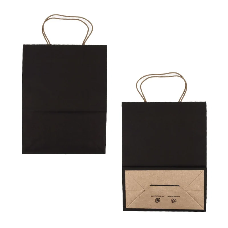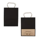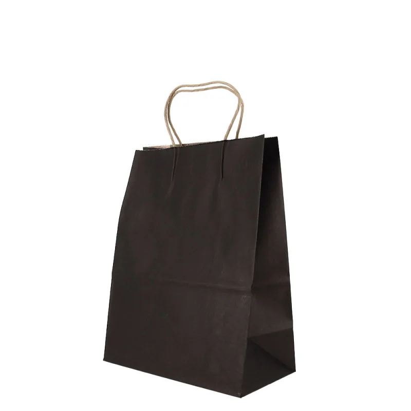Sacs cabas en papier recyclable noir avec soufflets latéraux, vendu par 12 pièces.