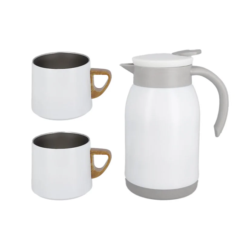 Coffret comprenant un thermos blanc d'une contenance de 800 ml et deux tasses.
