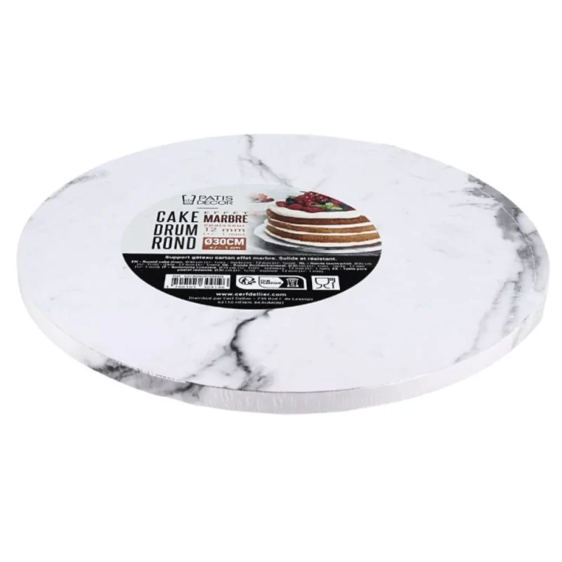 Cake drum rond en carton effet marbre, 30 cm de diamètre, très épais (1,2 cm).
