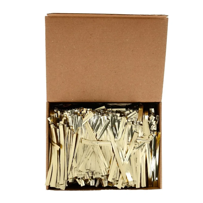Conditionnement : Boîte de 2000 liens twists identiques de couleur dorée.