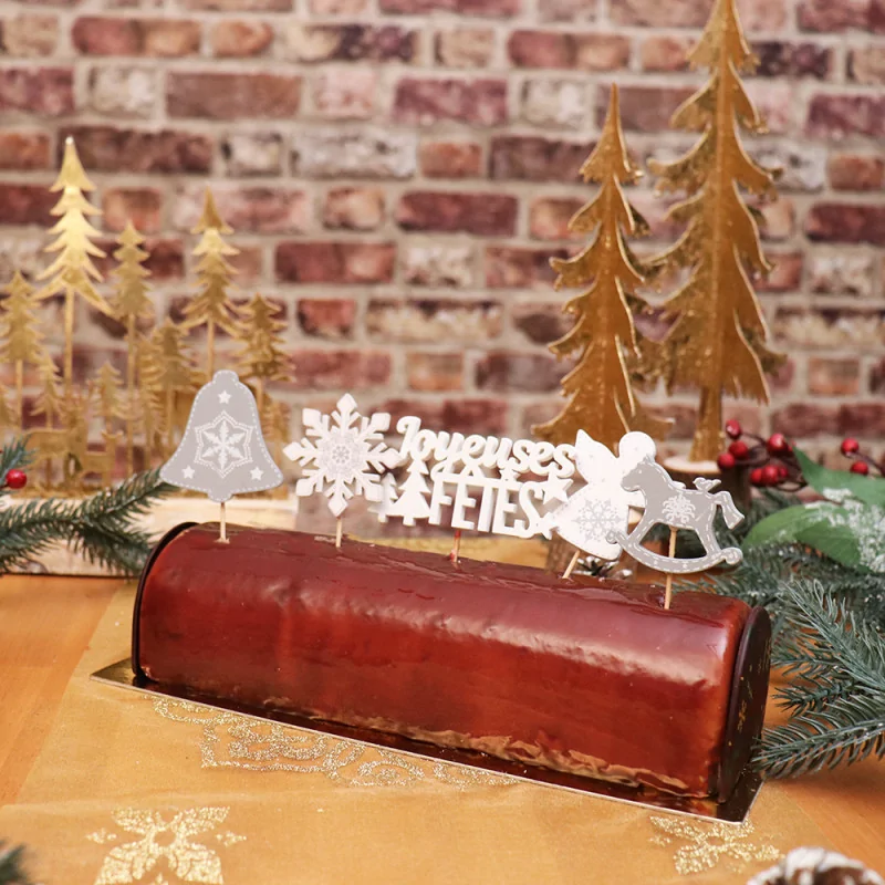 Ces décors assortis sont idéaux pour la décoration de bûches et de gâteaux de Noël.