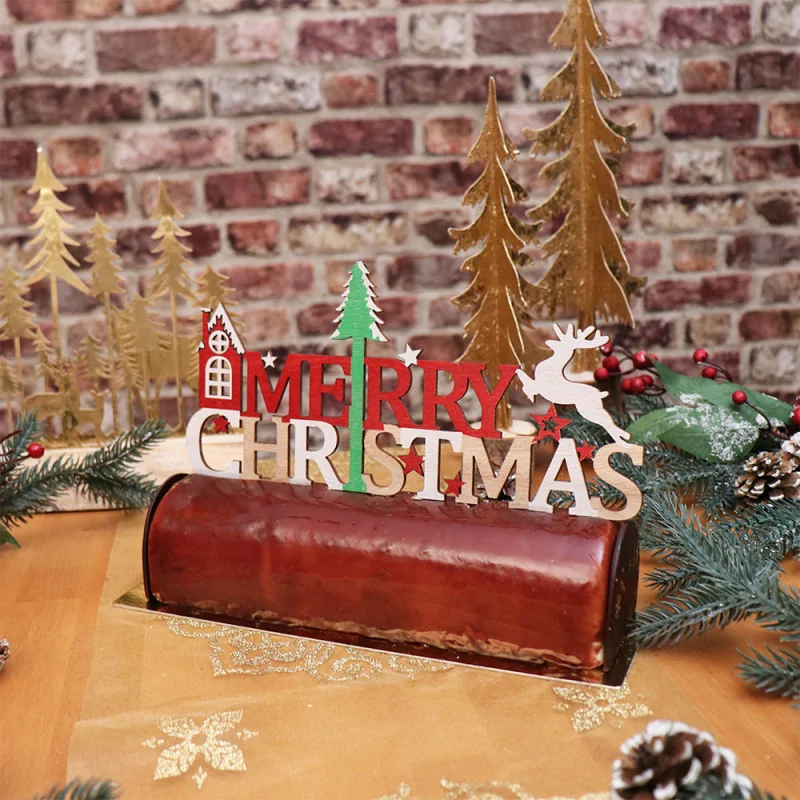 Décors 2D en bois avec pic, motif "Merry Christmas".