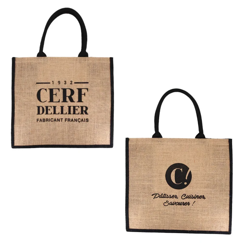 Sac cabas en toile de jute avec soufflets latéraux Cerf Dellier, environ 35 x 39 x 20 cm.