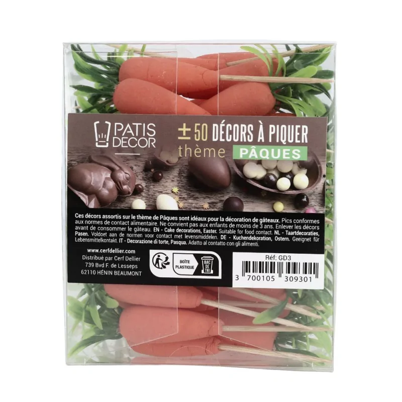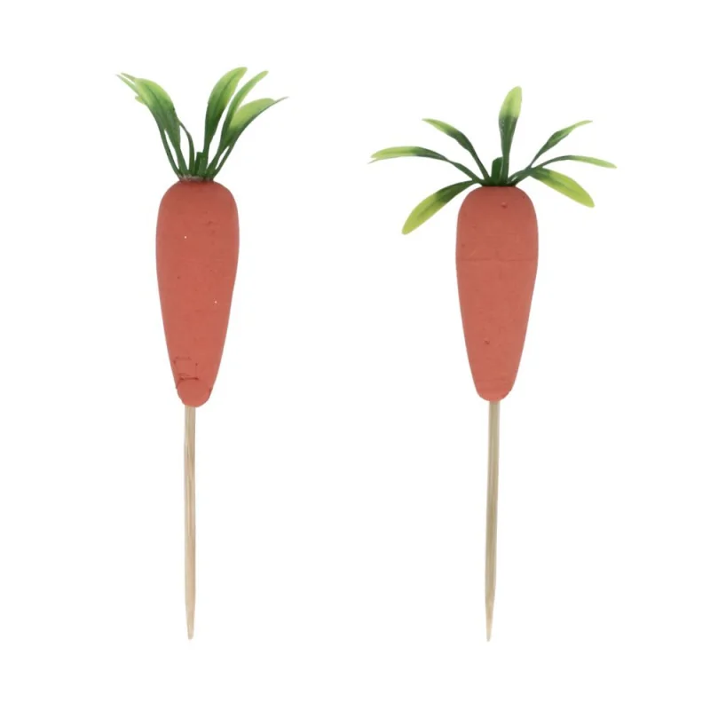 Lot de décors 3D sur pic représentant des carottes, environ 50 œufs par boîte.