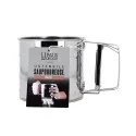 Saupoudreuse en inox avec poignée amovible et un tamis. Convient pour maximum 250 grammes de farine, le sucre ou du cacao en poudre.