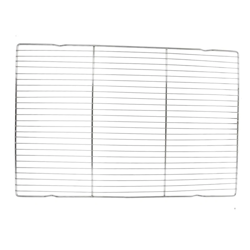 Grille de cuisson en inox avec pied, de 60 cm de longueur et 40 cm de largeur.