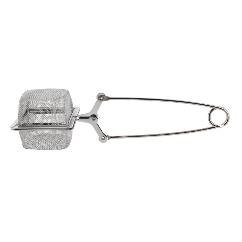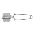 Diffuseur à thé carré, d'une longueur / largeur d'environ 4,5 cm et d'une hauteur d'environ 3,5 cm. Pour l'ouvrir, il suffit d'exercer une légère pression sur la poignée.