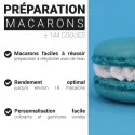 Incontournables de la pâtisserie française, les macarons sont des petits biscuits ronds à la texture croquante à l’extérieur et moelleuse à l’intérieur, garnis de ganache ou de confiture. Grâce à cette préparation Patisdécor à réhydrater, réalisez facilement environ 144 coques de macarons régulières et savoureuses.