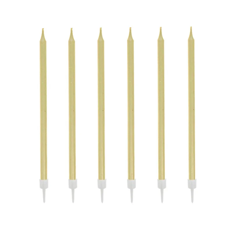 Lot de 12 bougies hautes dorées avec bobèches.