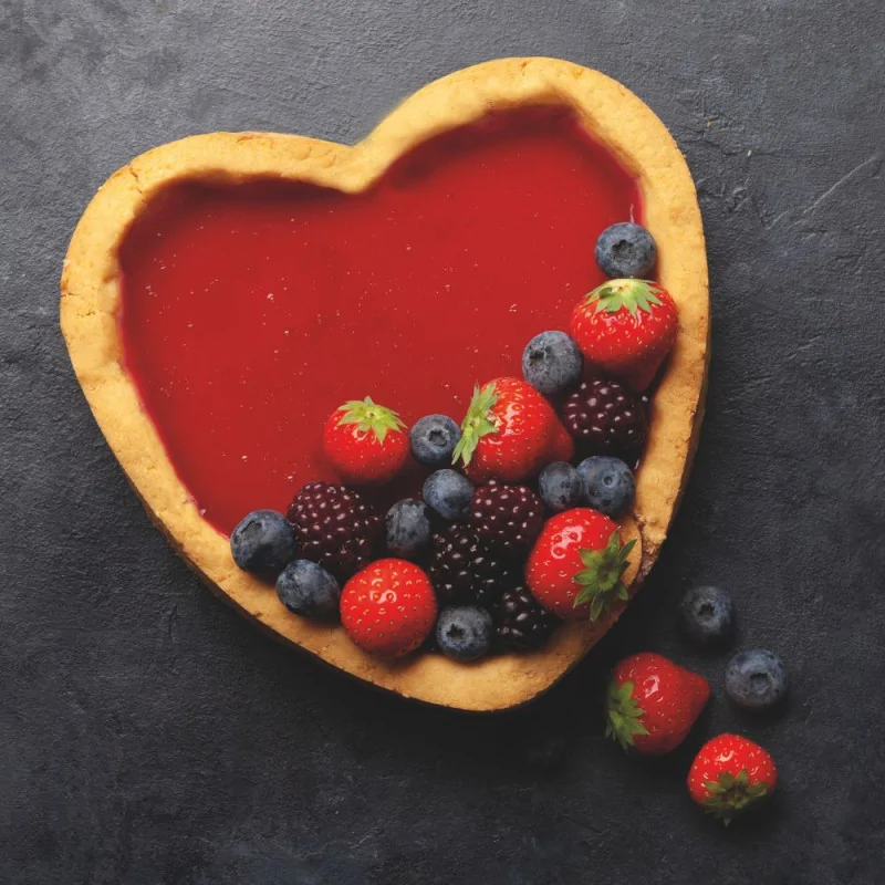 Cercle à tarte perforé "cœur" en acier inoxydable, permettant de réaliser de superbes desserts et tartes gourmandes avec des finitions parfaites.