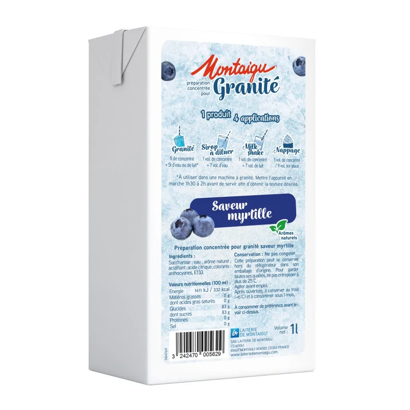 La préparation concentrée pour granité est un mélange liquide conçu pour être dilué puis congelé ou utilisé dans une machine à granité afin de produire une boisson glacée granuleuse appelée granité ou granita.