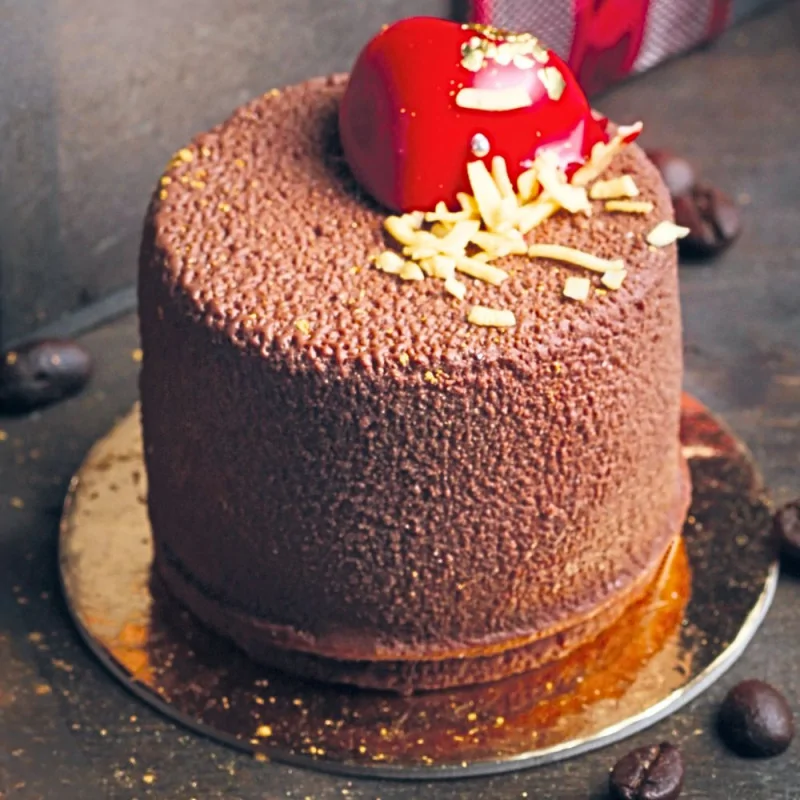 Spray alimentaire effet velours marron prêt à l'emploi, pour décorer facilement entremets, mousses et confiseries avec un rendu professionnel et homogène. Produit réservé aux professionnels.