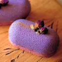 Spray alimentaire effet velours violet prêt à l'emploi, pour décorer facilement entremets, mousses et confiseries avec un rendu professionnel et homogène. Produit réservé aux professionnels.