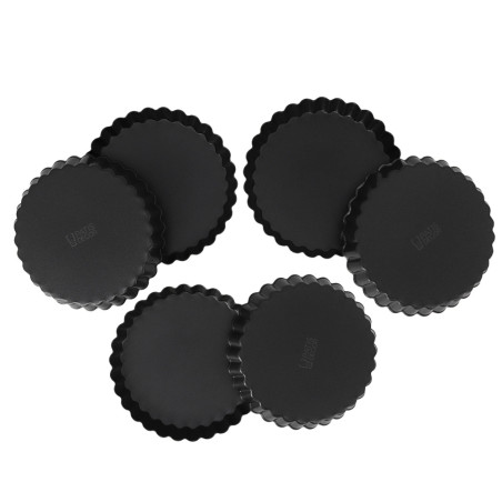 Lot de 6 moules à tartelettes en acier avec revêtement anti-adhérent, idéals pour réussir tartes, quiches et tourtes individuelles sans risque d’attachement.