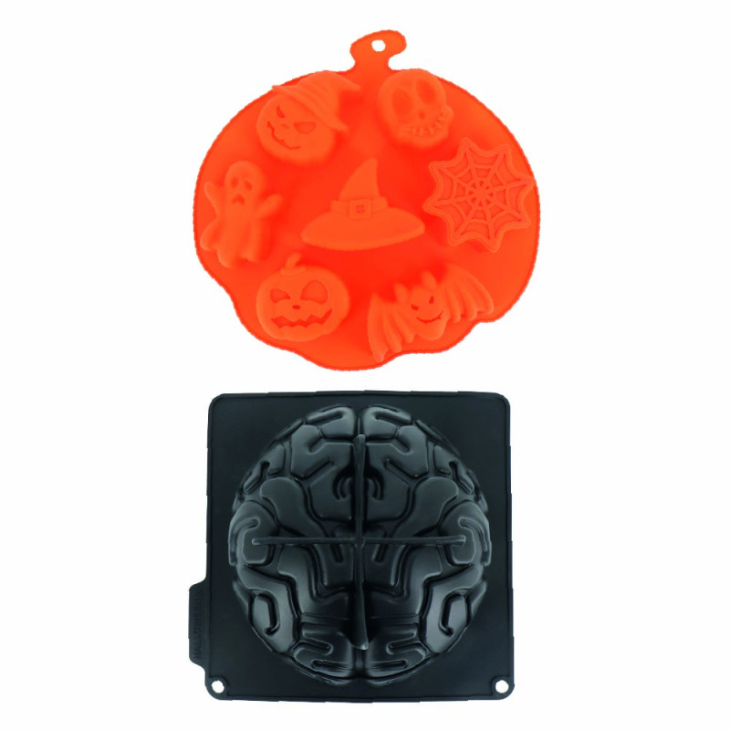 Faites frissonner vos proches avec des créations terrifiantes grâce à ce kit spécial Halloween ! Il comprend un moule cervelle géante de 18 x 18 cm (hauteur 7 cm) et un moule avec 7 empreintes sur le thème d’Halloween, allant du fantôme à la citrouille en passant par le crâne. Fabriqués en silicone anti-adhérent et résistants de -40 °C à +230 °C, ces moules vous permettent de réaliser facilement des desserts effrayants et originaux qui surprendront tous vos invités.