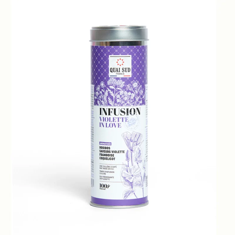 Découvrez Violette In Love, une infusion bio alliant rooibos, citronnelle et mélisse. Un mélange subtil et apaisant, idéal pour se détendre et profiter d’un moment de relaxation douce à tout moment de la journée.