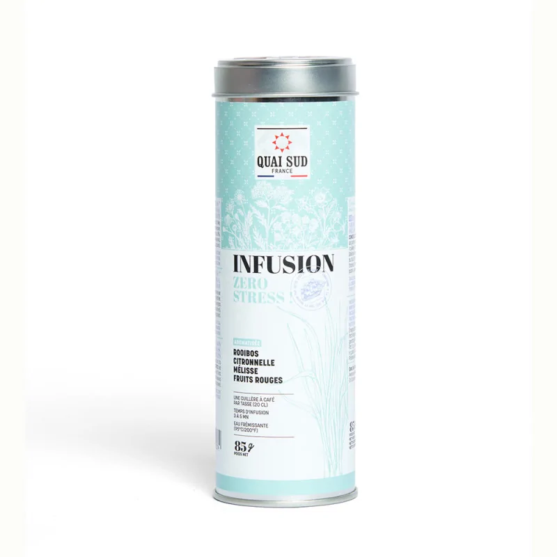 Avec ses saveurs douces et équilibrées, l’Infusion Zéro Stress s’infuse chaude pour se détendre ou glacée pour un rafraîchissement fruité en toutes saisons. Idéale pour un moment cocooning ou pour compléter votre routine bien-être.