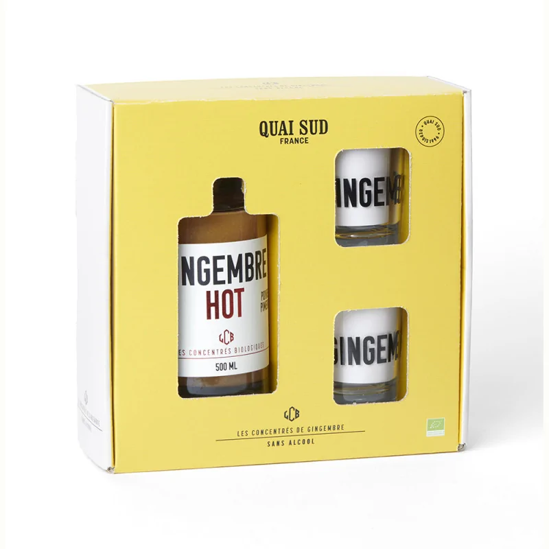 Succombez à l’intensité du Concentré Bio Gingembre « Hot », un élixir audacieux qui réchauffe et vivifie à chaque gorgée. Ce coffret exclusif inclut une bouteille de 50 cl ainsi que deux verres Caravelle sérigraphiés, parfaits pour une dégustation conviviale et originale.
