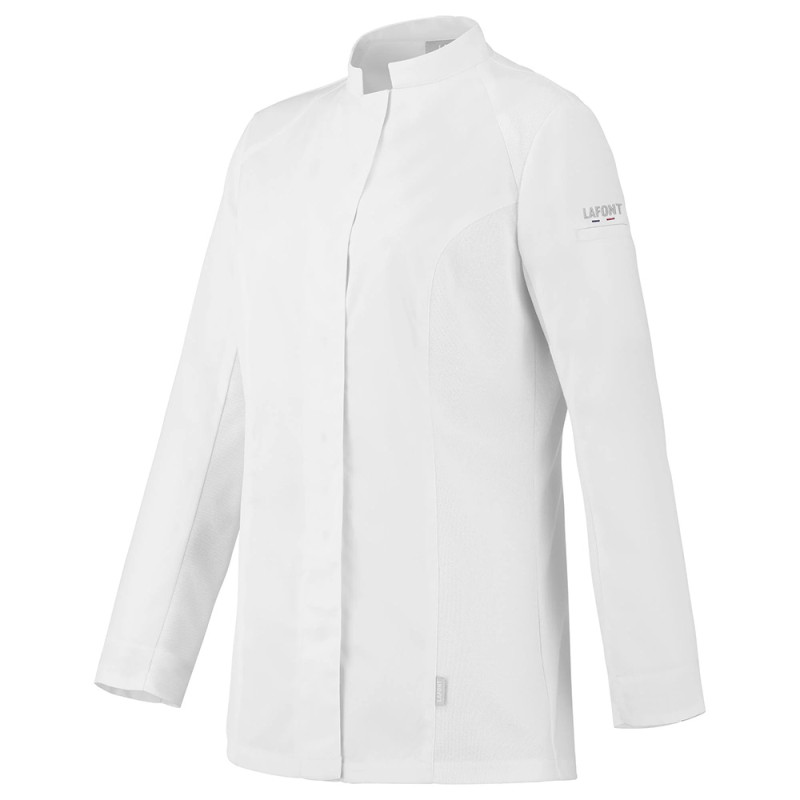 Alliant modernité et confort, cette veste femme blanche est conçue en bi-matière, avec un tissu principal résistant et des empiècements en maille respirante. Sa coupe élégante et sa fermeture à pressions cachées lui confèrent un style professionnel et raffiné, idéal pour un usage quotidien.