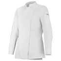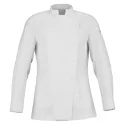 Conçue pour allier tradition et modernité, la veste de cuisine NINA se distingue par son subtil tressage sur l’épaule, son plastron croisé et sa taille légèrement marquée. Les plis d’aisance au niveau du coude et la découpe dos avec effet queue de pie apportent confort et liberté de mouvement.