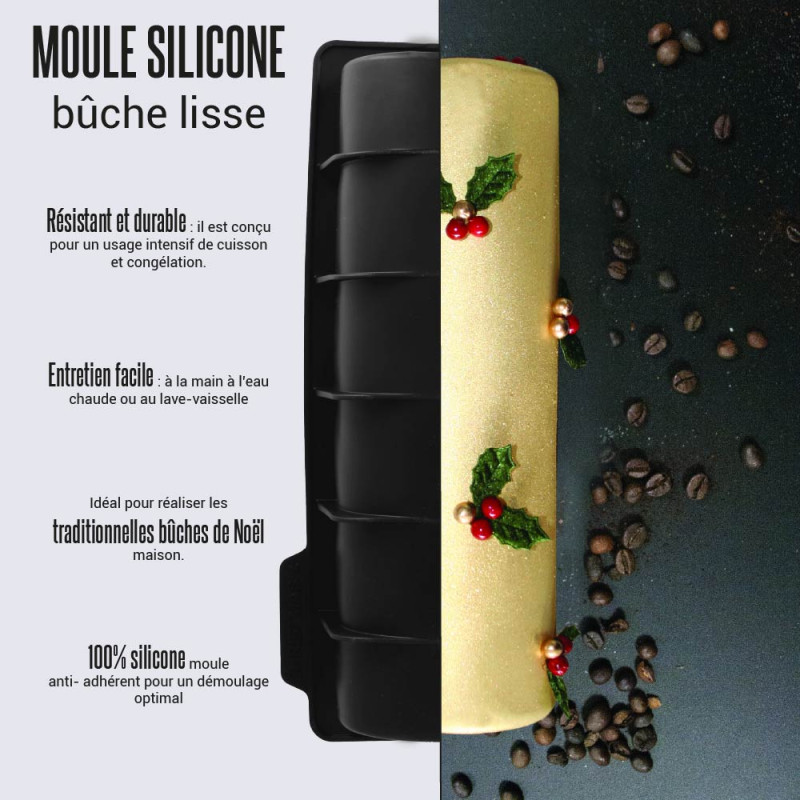 - 1 x Moule à bûche lisse en silicone – 30x10cm, h.7cm