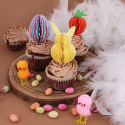 Lot de 3 décors Pâques en papier nid d’abeille à piquer, pour sublimer vos desserts de fêtes avec une touche colorée et festive.