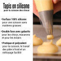 - Silicone souple et résistant et tricot de verre imprégné, double-face : gabarits choux / macarons d’un côté et éclairs de l’autre