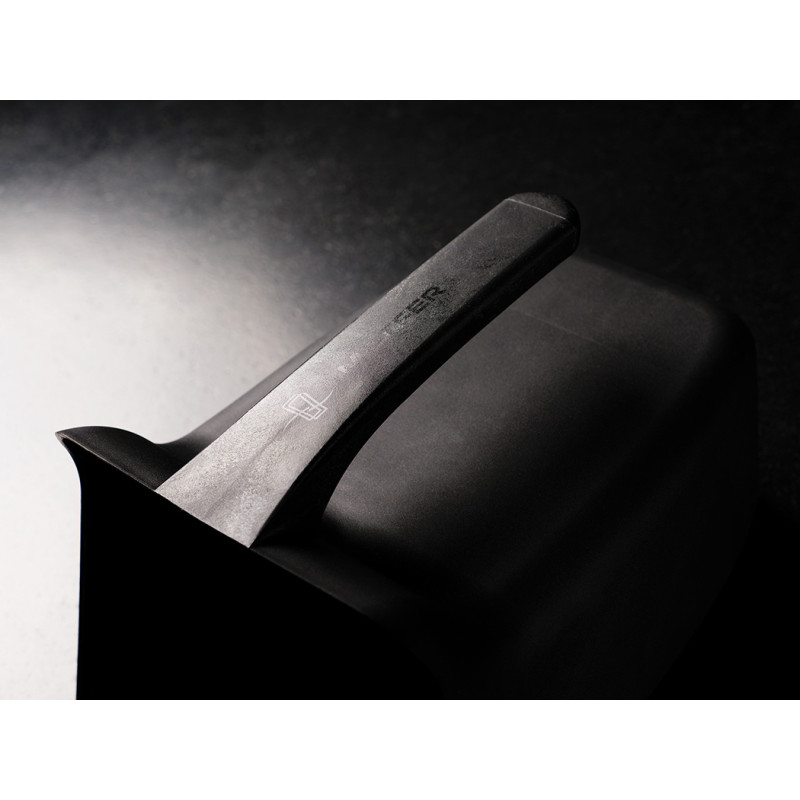 Remplacer vos vides marmites inox lourds par un outil léger, pratique et ergonomique Réduit la pénibilité lors des opérations et facilite le geste et en soulageant l\'articulation du poignet Permet de racler parfaitement les fonds et les angles des cuves des sauteuses Prise en main confortable et sûre Partie supérieure évite le contact des produits chauds avec la main Facile à nettoyer à la douchette et au lave-batterie Supporte 220 °c Contenance de 2,5 litres Produit très léger 385 g Existe en version écumoire perforée