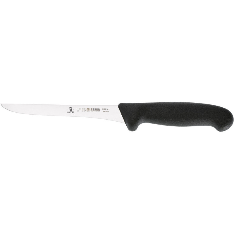 Lame en acier en chrome et molybdène de première qualité Lame trempée sous vide pour une meilleure tenue de coupe Manche anti-glisse, non-poreux et stérilisable Livré sous étui plastique Lame étroite