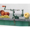 Pèle, étrogne et tranche tous les fruits ronds en une seule opération Système de dégagement du couteau peleur Facile à fixer sur le plan de travail lisse grace au socle à ventouse