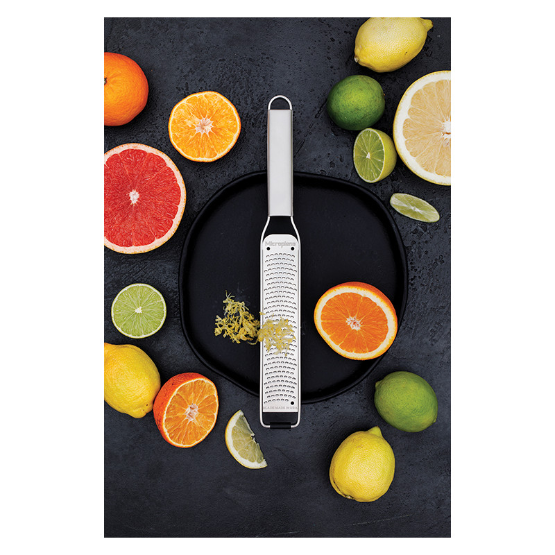 Idéale pour râper finement et sans effort tous les ingrédients : zestes, fromages, gingembre, chocolat, etc Lames en acier inoxydable ultra-affûtées et de longue-durée, fabriquées par photochimie Les aliments sont coupés précisément, sans être déchiquetés ni écrasés Les arômes naturels et les saveurs sont libérés et préservés Râpe équipée d\'un manche solide en acier inoxydable Oeillet de suspension