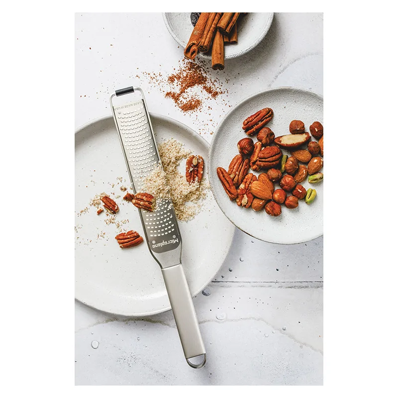 Idéale pour râper finement et sans effort tous les ingrédients : zestes, fromages, gingembre, chocolat, etc Lames en acier inoxydable ultra-affûtées et de longue-durée, fabriquées par photochimie Les aliments sont coupés précisément, sans être déchiquetés ni écrasés