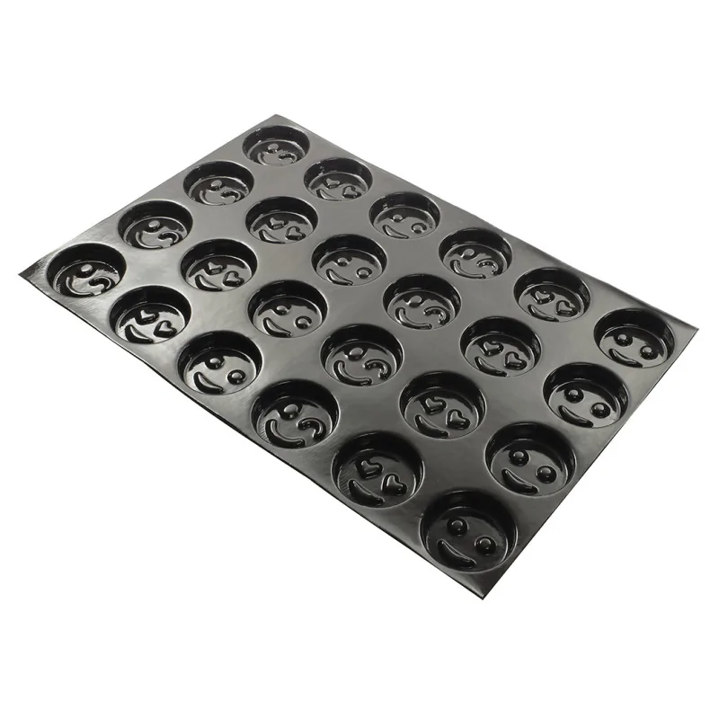 Flexipan 60x40 plaque de 24 smileys (12 coeurs, 12 sourires) Ø 7,8 h 2 cm