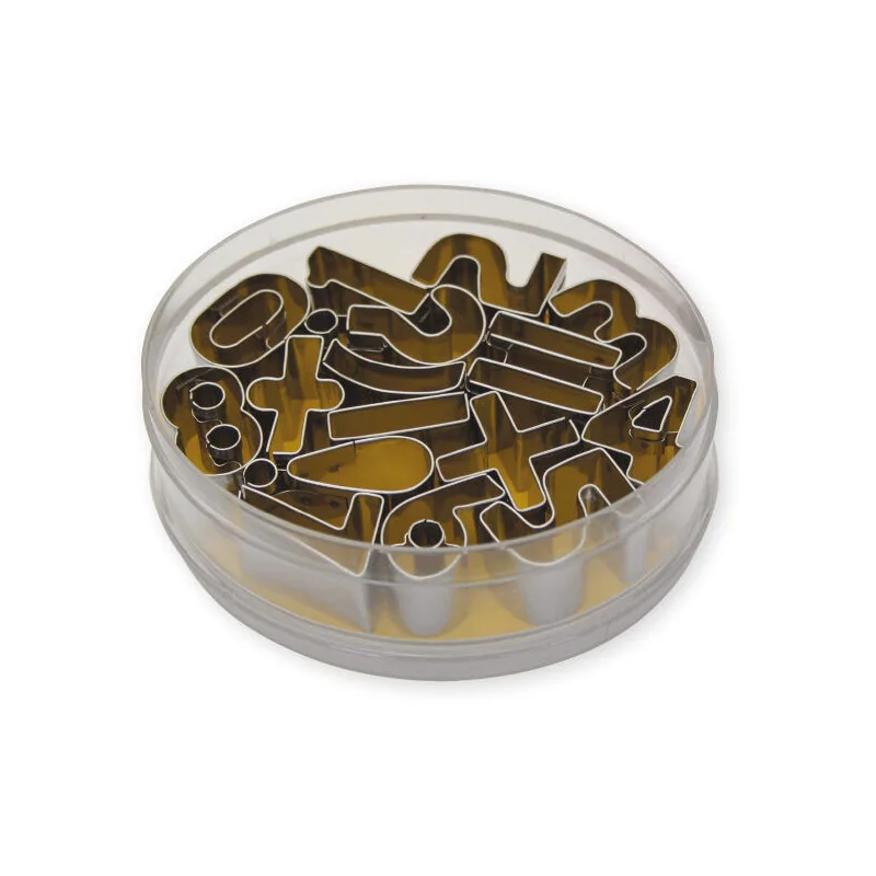 boîte de 16 découpoirs inox chiffres et signes