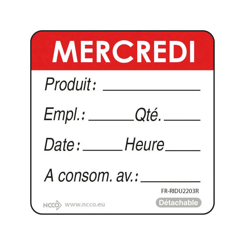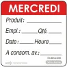 rouleau de 500 étiquettes DLC jour de la semaine autocollantes 5x5 cm mercredi rouge